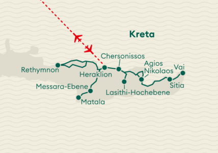 Ankunft am Flughafen Heraklion und Transfer in Ihr Hotel. Am Abend lernen Sie die Reisegruppe bei einem gemeinsamen Willkommensessen besser kennen.